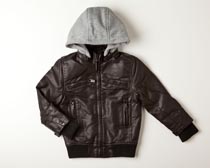 Faux Leather Jacket with Fleece Hoodie